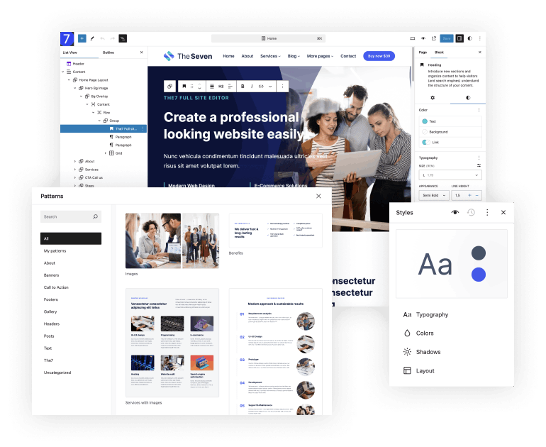 As of version 12, The7 supports WordPress’s native Full Site Editing (FSE). Edit your entire website – including headers, footers, archives, and more – directly within the WordPress interface. Enjoy The7’s signature design without the need for additional plugins or a steep learning curve.