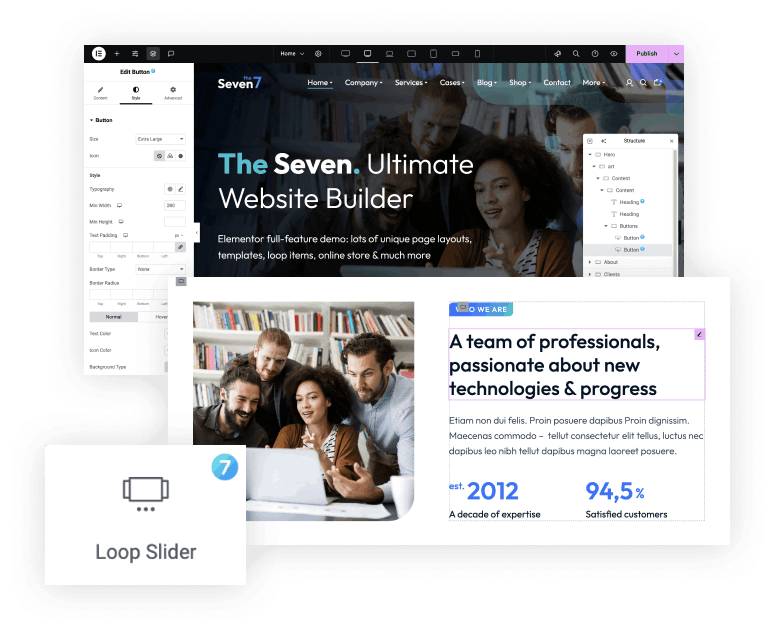 Design your entire website with ease. The7 extends Elementor, giving you complete control over your site’s: