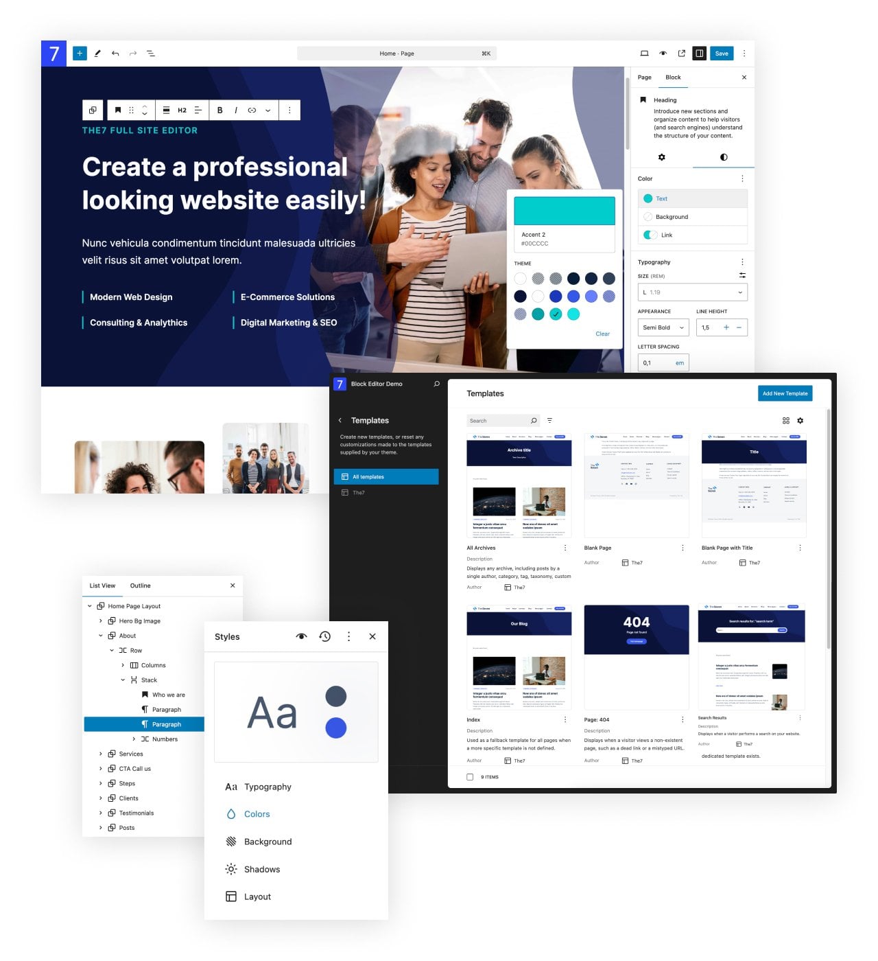 The7 is the ultimate WordPress theme, offering unparalleled versatility, flexibility, and value. Compatible with Elementor, WordPress Block Editor, WPBakery Page Builder, and WooCommerce, The7 empowers you to build any website imaginable – from professional corporate sites and online stores to creative portfolios and simple blogs – no coding skills required!